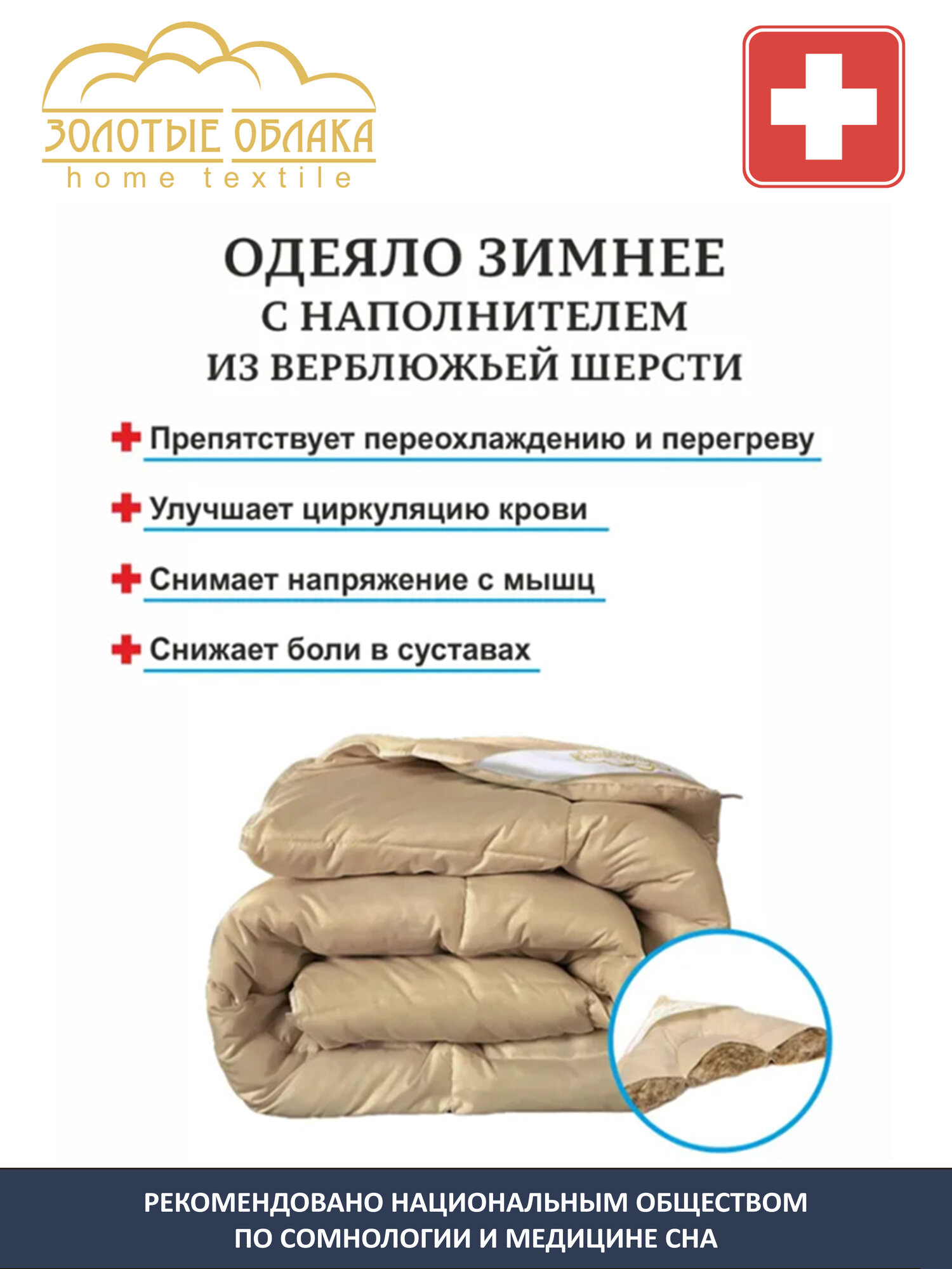 Одеяло 1,5 спальное Золотые облака "Верблюд" 140х205 см / Зимнее, теплое, одеяло с гипоаллергенным наполнителем из верблюжьей шерсти информация: