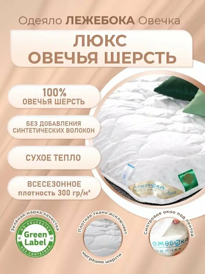 10 цен на Одеяло лежебока Овечка Люкс 172х205 из 100% овечьей шерсти со смотровым окном, 2943-172-3