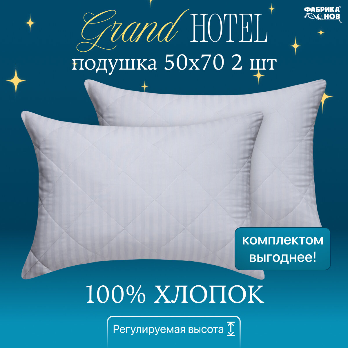Подушки Grand Hotel 50x70, набор 2шт сатин, на молнии, гипоаллергенная, стеганая информация: