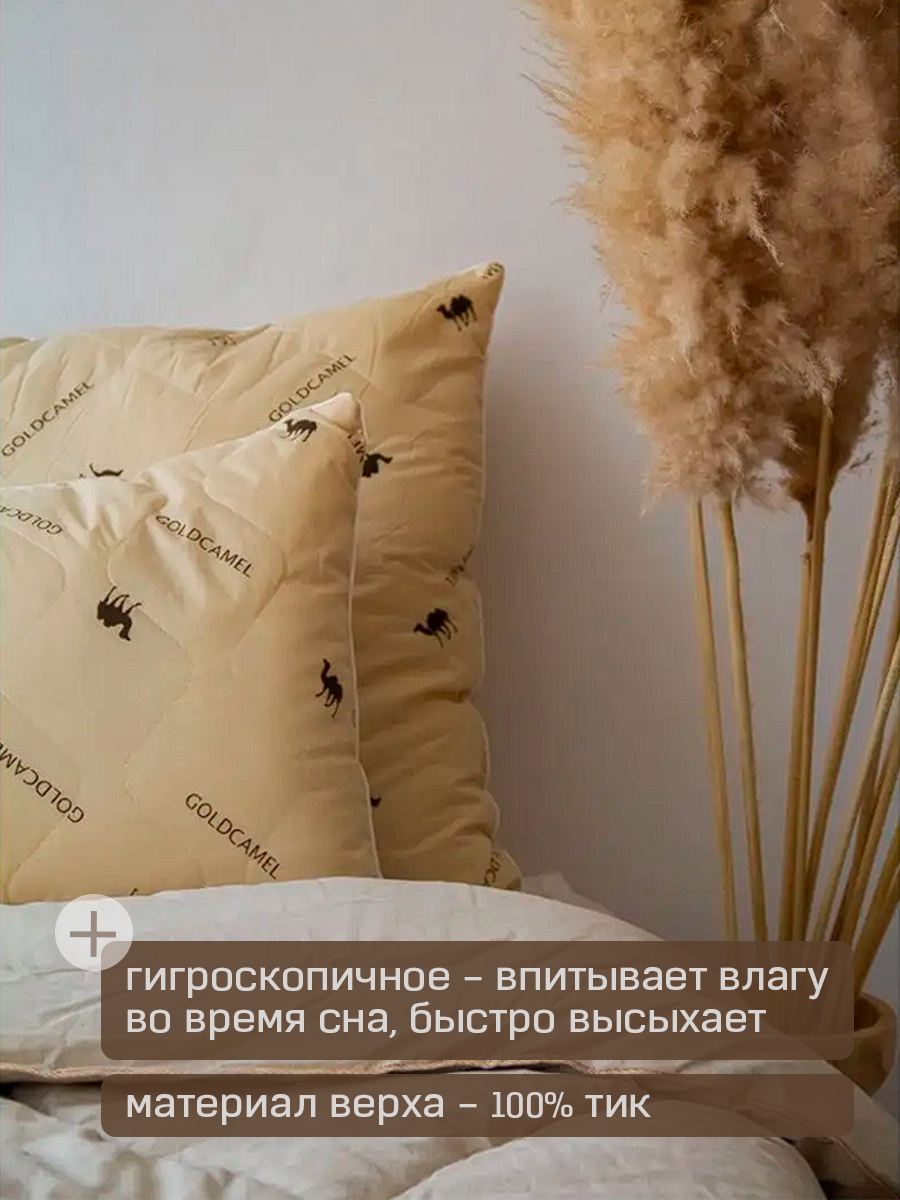 Подушка "Комфорт" из верблюжьей шерсти, 50х70, бежевая, гипоаллергенная