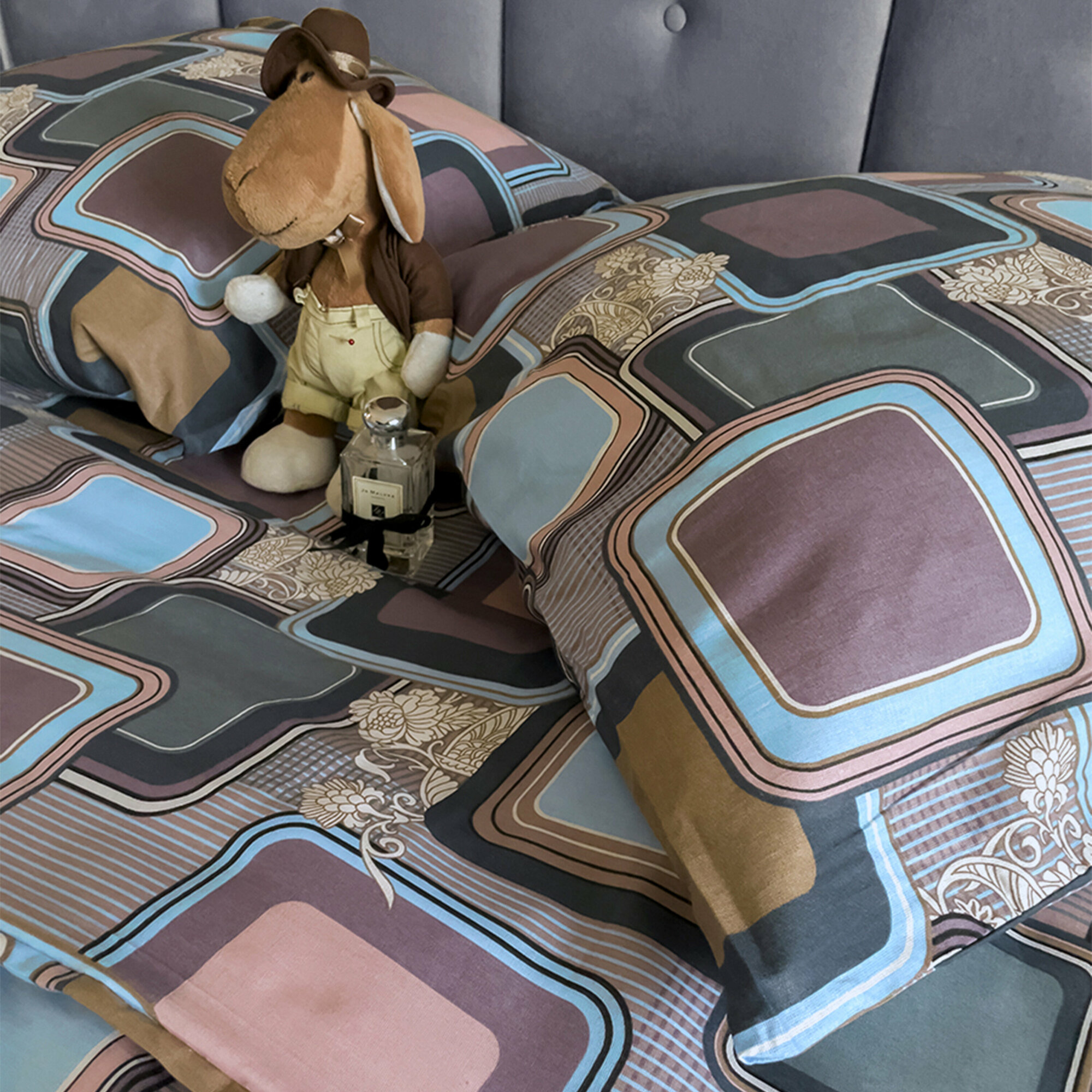 Постельное белье Сказка Сатин "Lester" 1,5-сп наволочка 50х70 1шт Простынь на резинке 90х200 см Пододеяльник 145х215 см