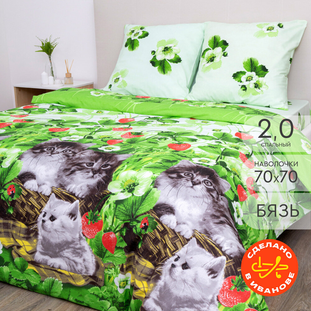 Постельное белье Василиса 2-спальное, Бязь, наволочки 70х70 см, Котята в землянике 1 890 ₽