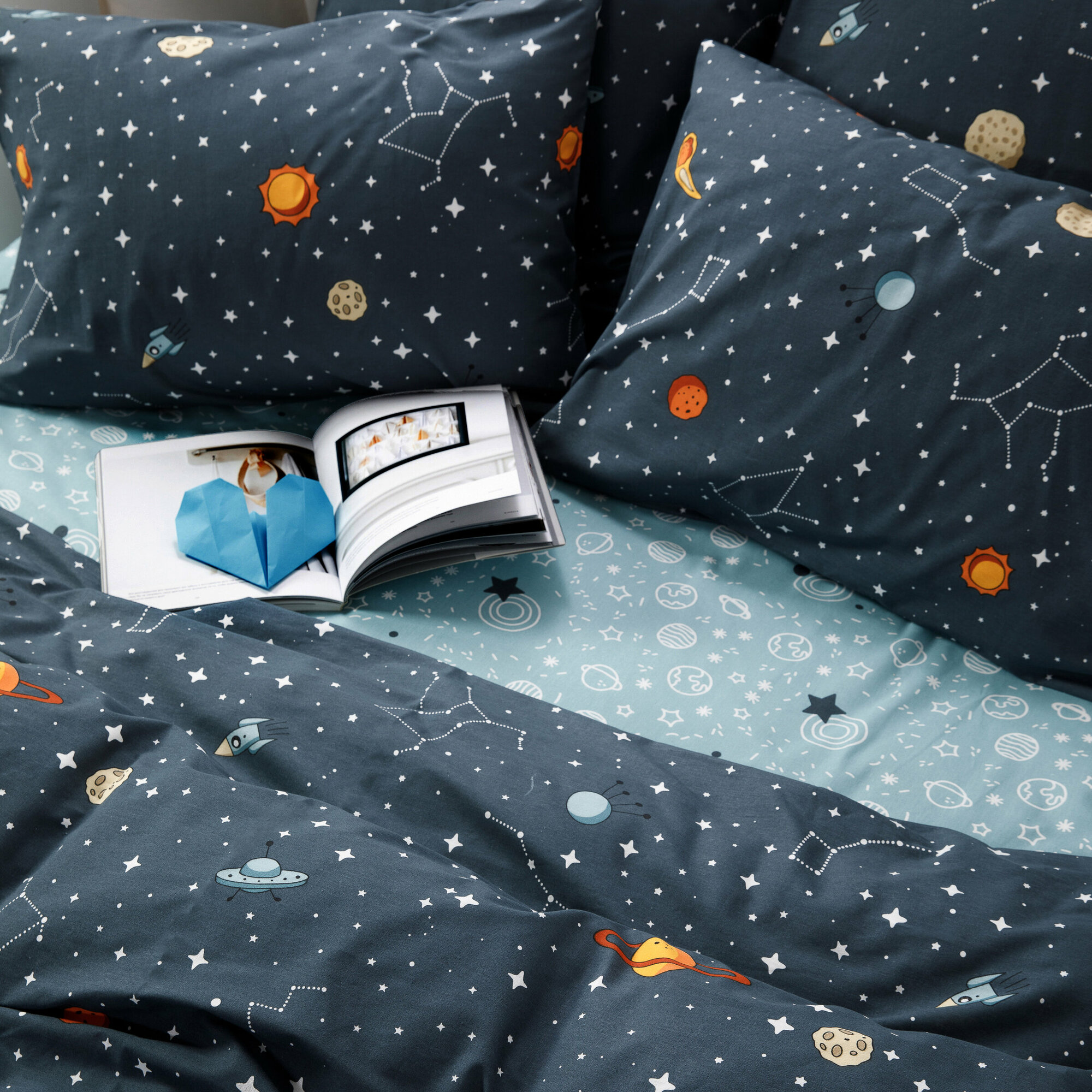Постельное белье Мечта "Галактика" 1,5-сп наволочка 50х70 1шт Простынь на резинке 90х200 см Пододеяльник 145х215 см