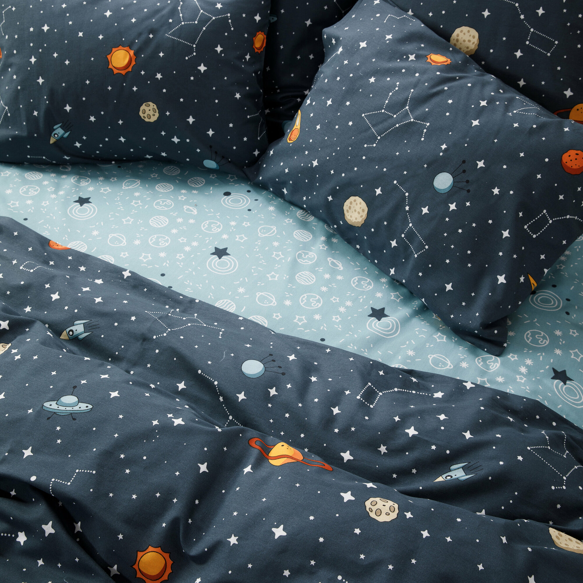 Постельное белье Веселина Планеты, бязь, евро, наволочки 50х70, 100% хлопок информация: