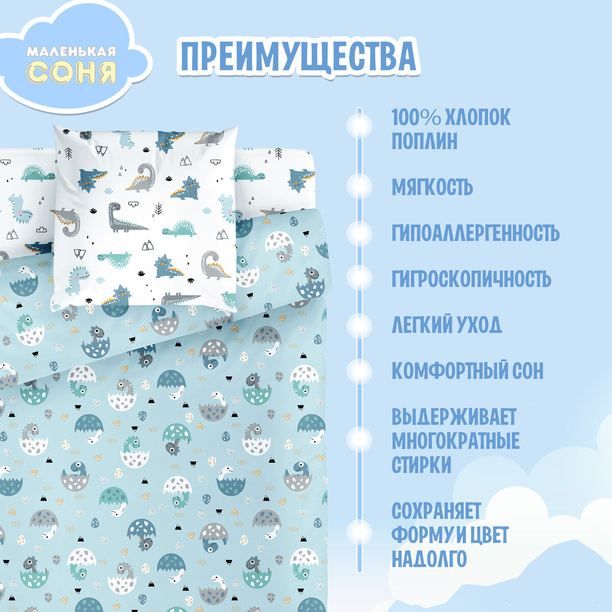 Постельное белье в детскую кроватку Маленькая Соня Динопупсики/хлопок / поплин информация: