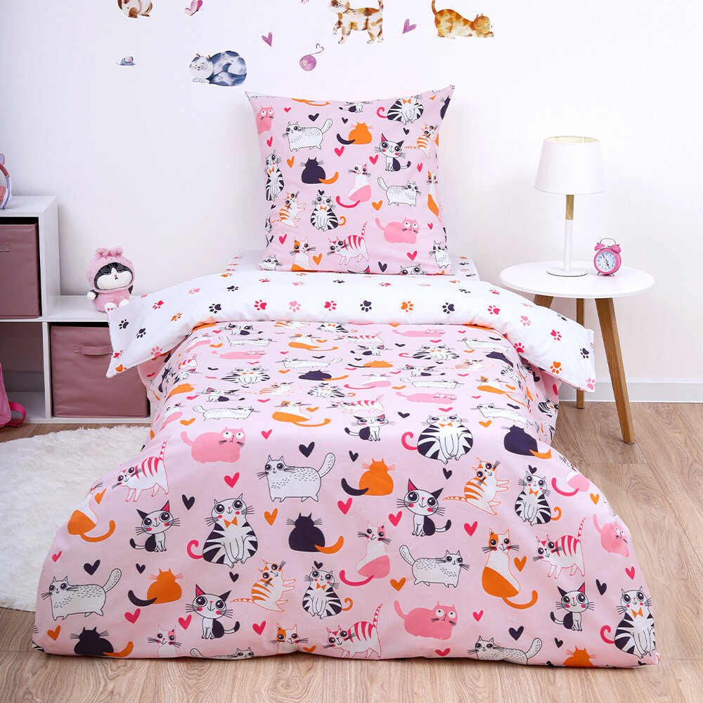 Постельное белье для детей Василек из поплина, 100% хлопок, 1,5 спальное с наволочкой 70х70 см, Только для котиков