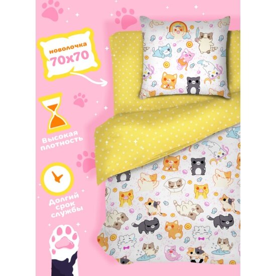 Отзывы на Постельное белье для детей Василек из поплина, 100% хлопок, 1,5 спальное с наволочкой 70х70 см, Только для котиков