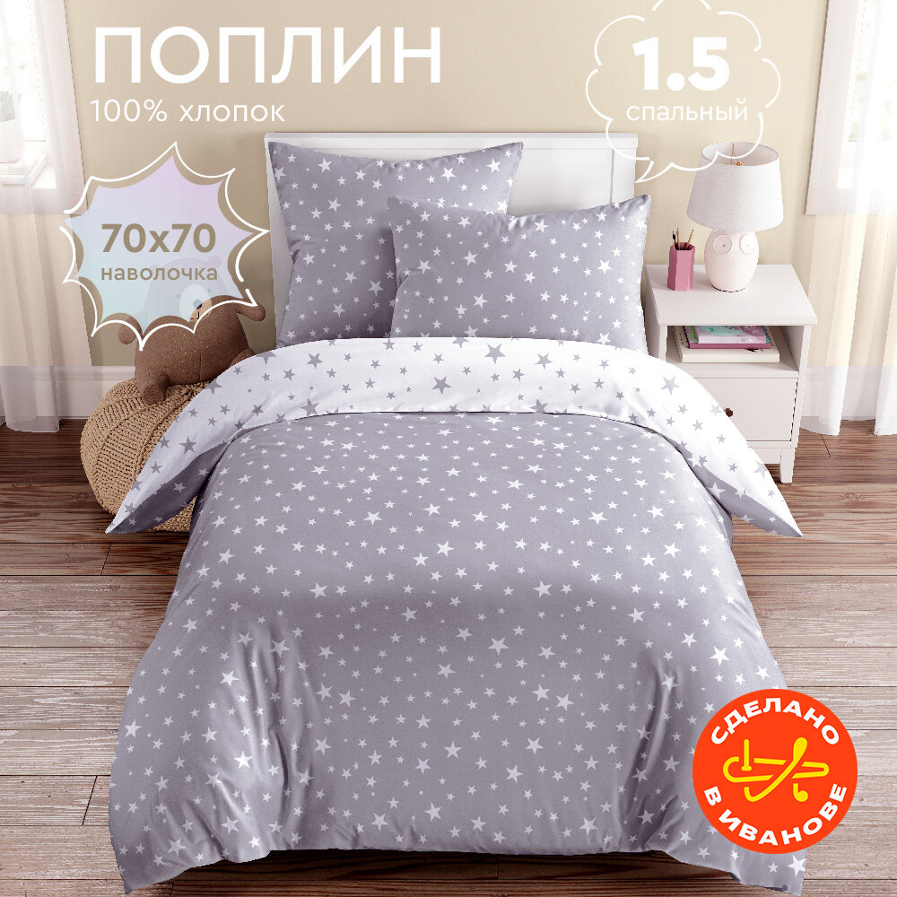10 цен на Постельное белье для детей Василек из поплина, 100% хлопок, 1,5 спальное с наволочкой 70х70 см, Звездочет