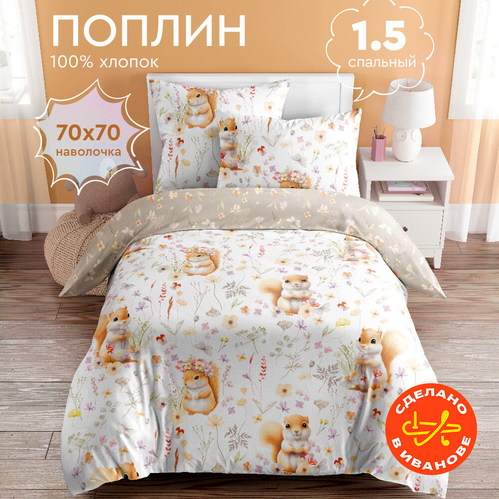 10 цен на Постельное белье "Василек" 1,5-спальное, Поплин, Лесная красавица