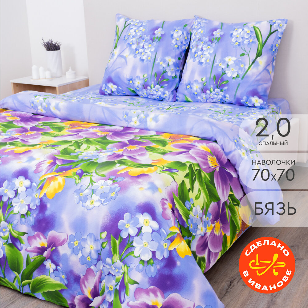 Постельное белье Василиса 2-спальное, Бязь, наволочки 70х70 см, Фиалки 2 190 ₽