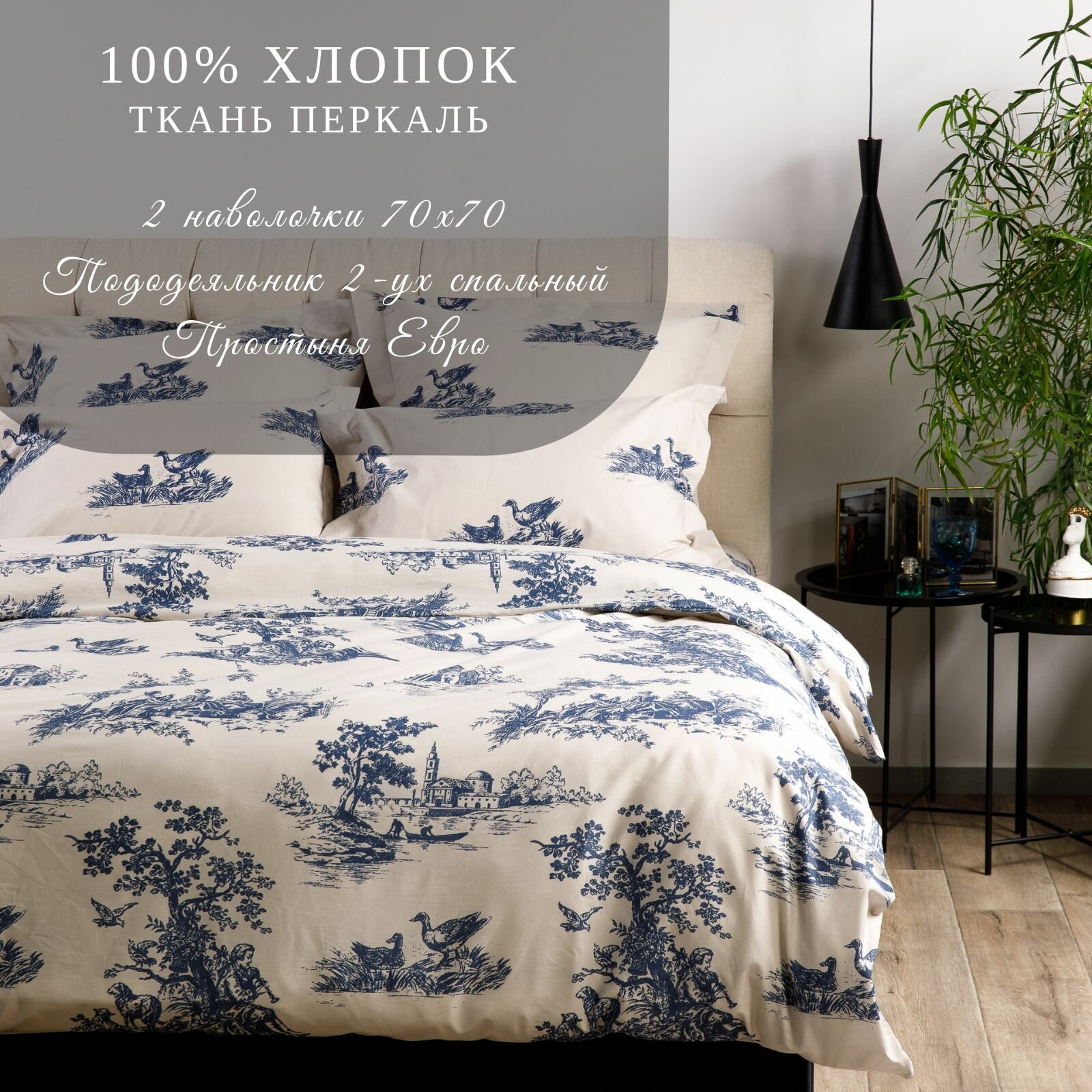 Постельное бельё/евро/комплект/простынь 220х240/пододеяльник 200x215/наволочки 70х70/перкаль/Тюильри/WINDSLOW