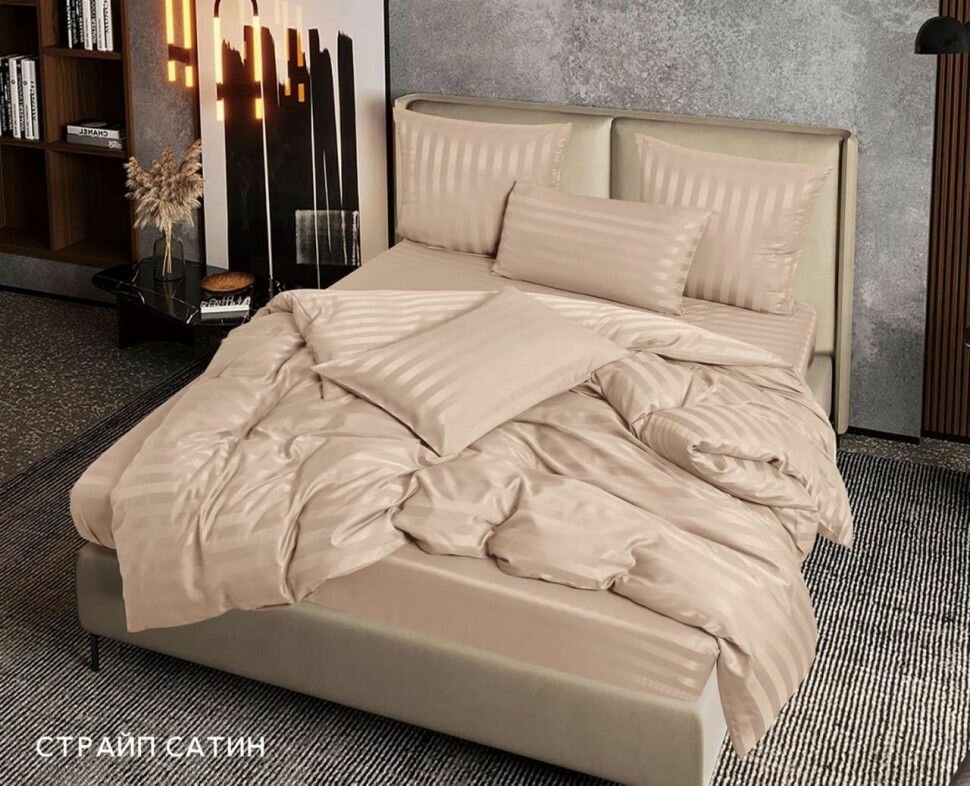 Комплект постельного белья Страйп-сатин, Семейный размер, Простынь на резинке