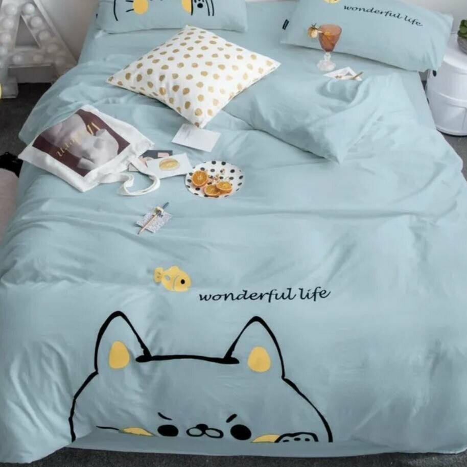 Детское постельное белье Mency 1,5 спальное сатин наволочка 50x70 голубой черный цвет 3 000 ₽