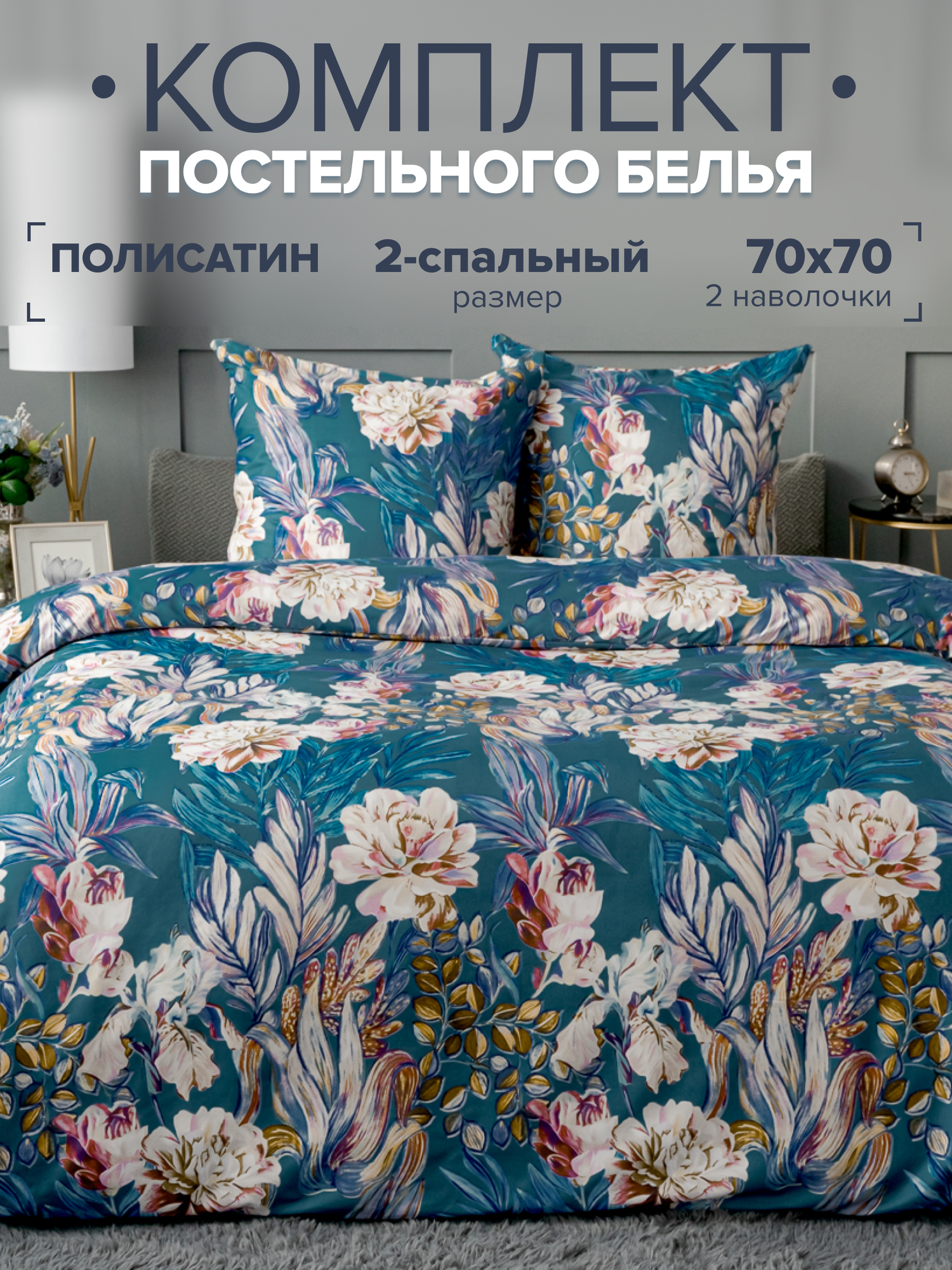 10 цен на Постельное белье 2 спальное Павлина Эдем бирюза, Полисатин, наволочки 70x70