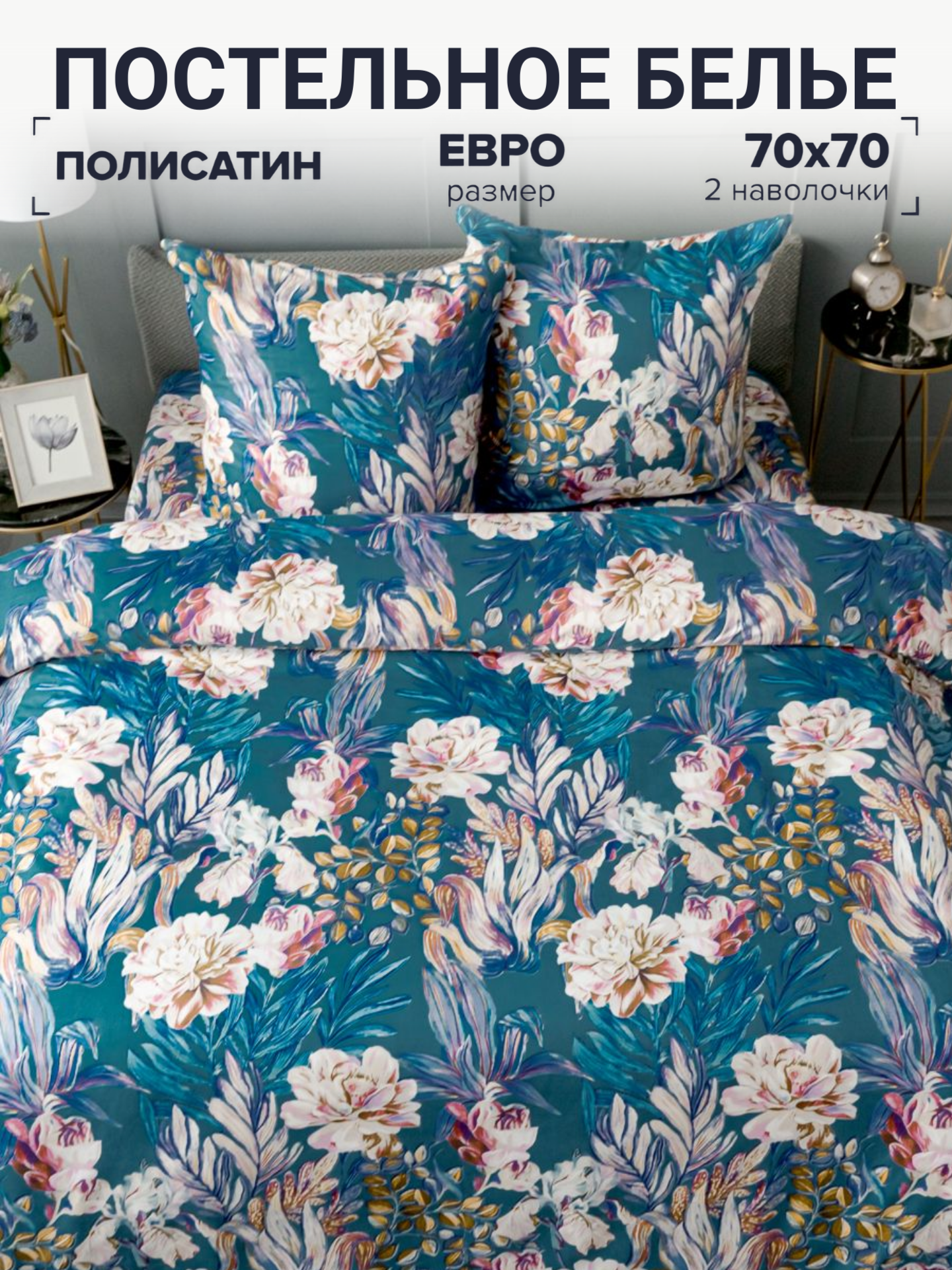 10 цен на Постельное белье евро Павлина Эдем бирюза, Полисатин, наволочки 70x70