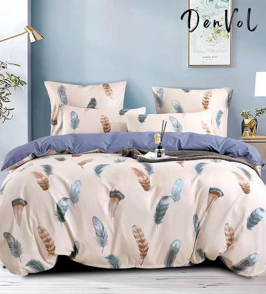 Комплект постельного белья Denvol, Candie's 2-х спальный-Сатин пододеяльник 180х220 на молнии, простыня на резинке 160х200(+25), 2 наволочки 70х70, бежевый, синий 3 750 ₽