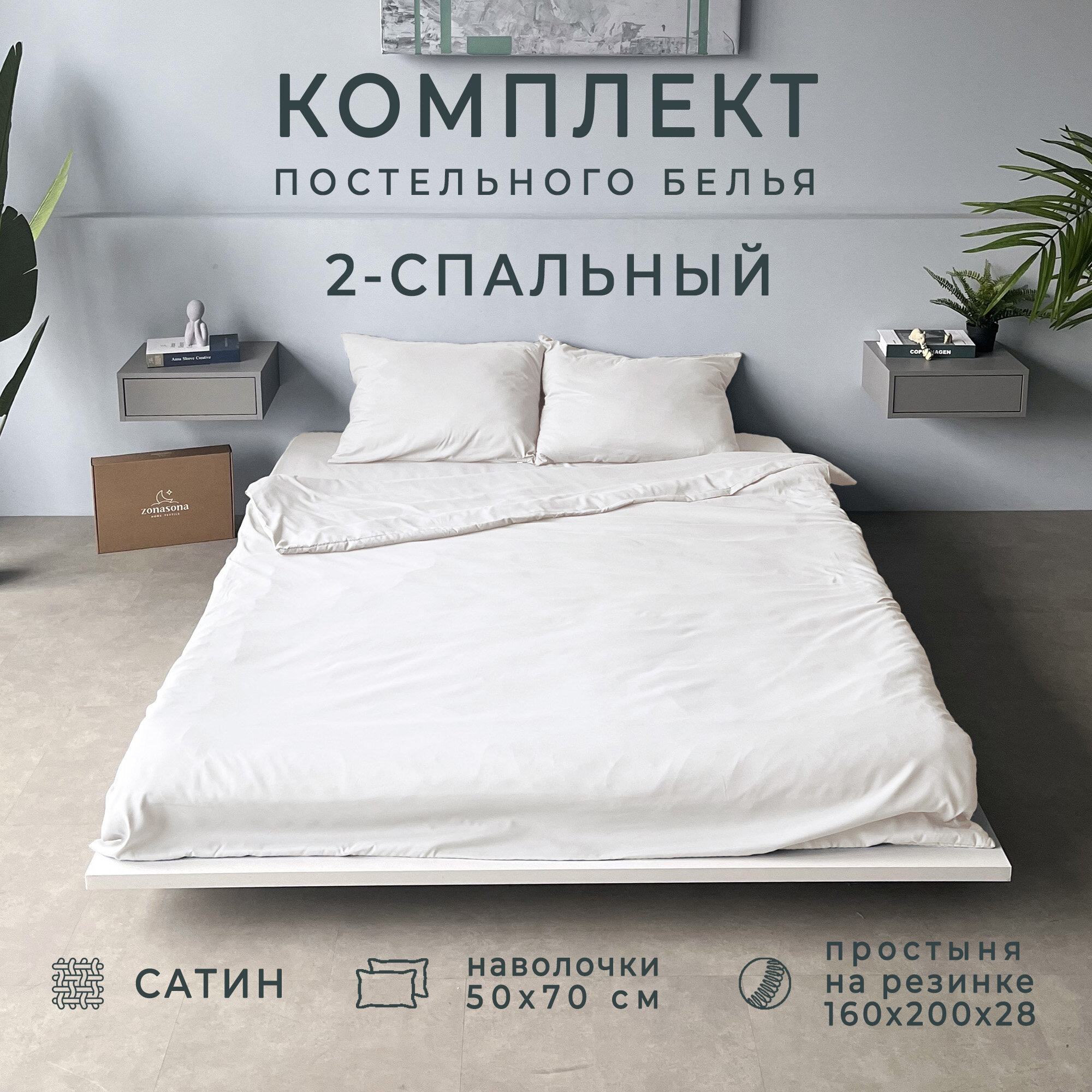 Комплект постельного белья ZonaSona с простыней на резинке, Светло-Серый, 2 спальный, сатин, наволочки 50х70 2 шт. 2 950 ₽