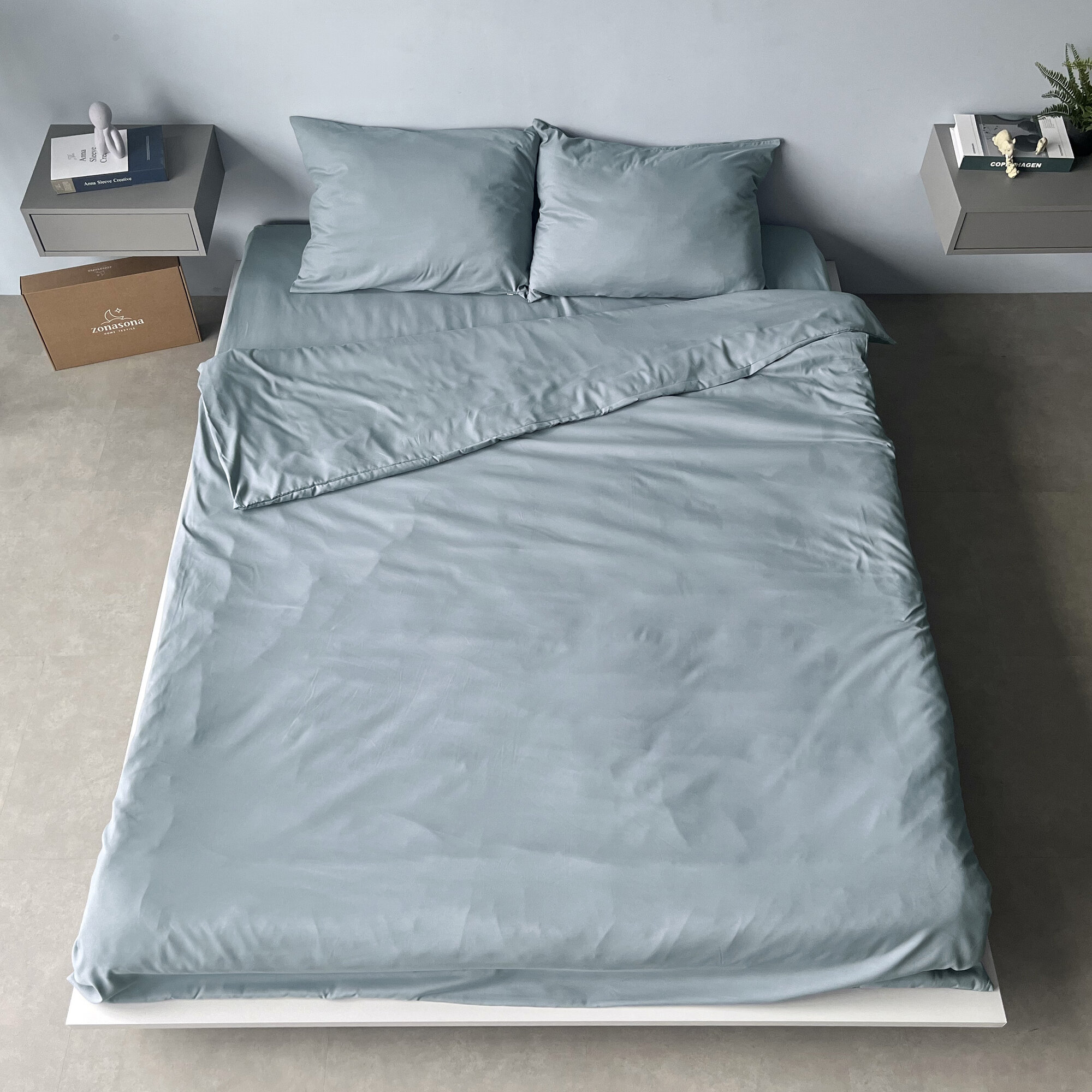 Комплект постельного белья ZonaSona с простыней на резинке, Серо-Голубой, Евро, сатин, наволочки 50х70 2 шт. 3 022 ₽