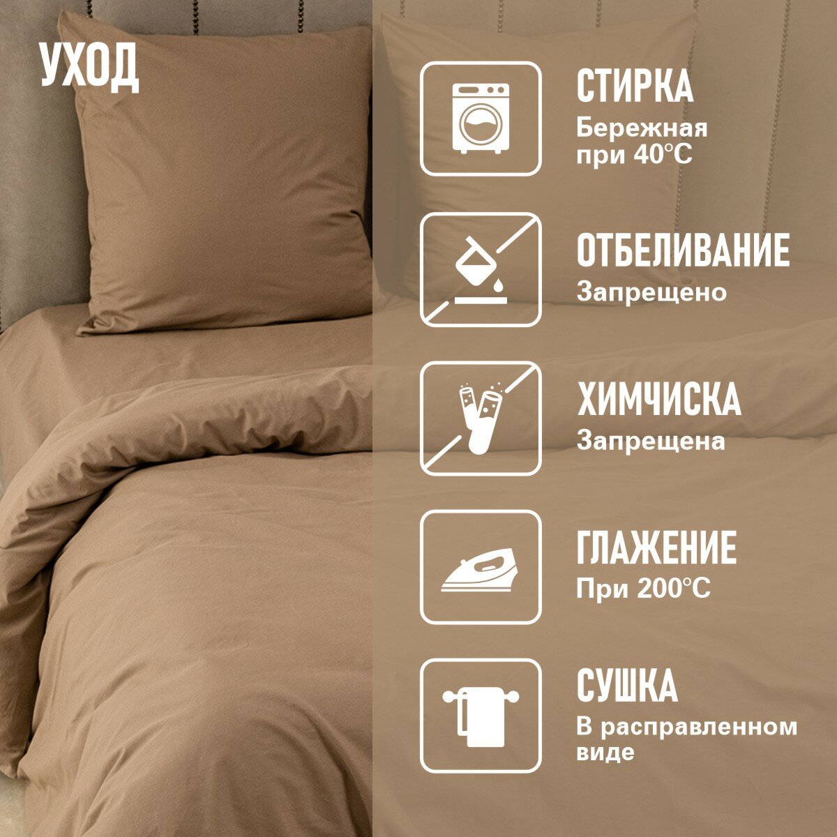Отзывы на Постельное белье 1,5 спальный BRAVO поплин темно-бежевый/ хлопок / наволочки 70х70