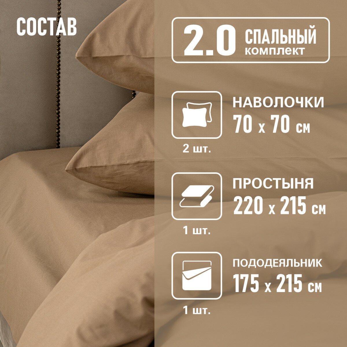 Отзывы на Постельное белье 2 спальный BRAVO поплин темно-бежевый/ хлопок / наволочки 70х70