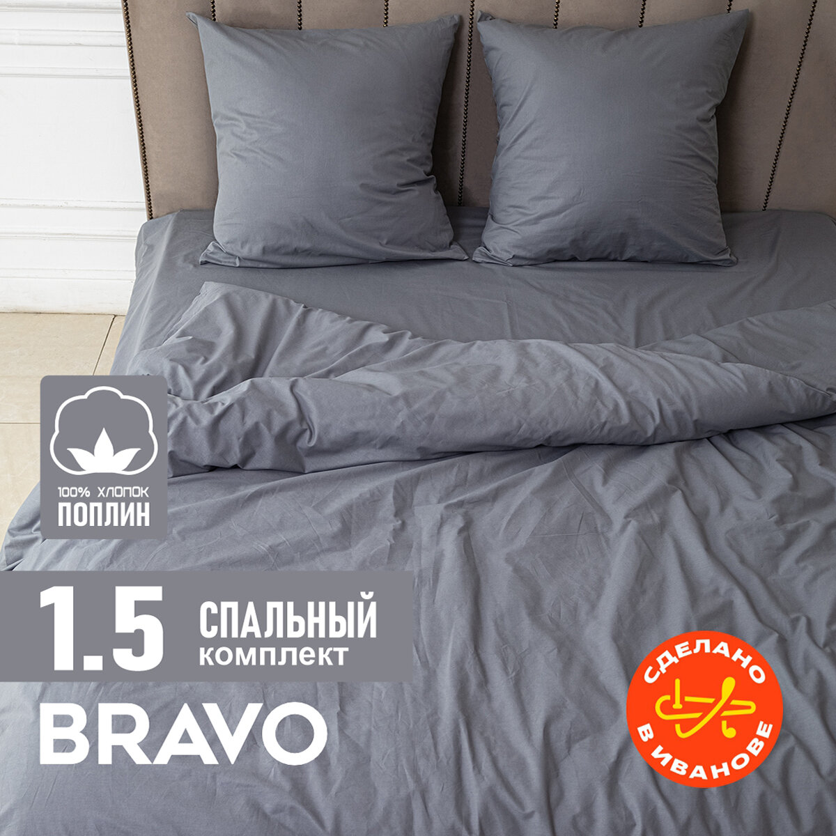Отзывы на Постельное белье 1,5 спальный размер BRAVO поплин серый/ хлопок / наволочки 70х70