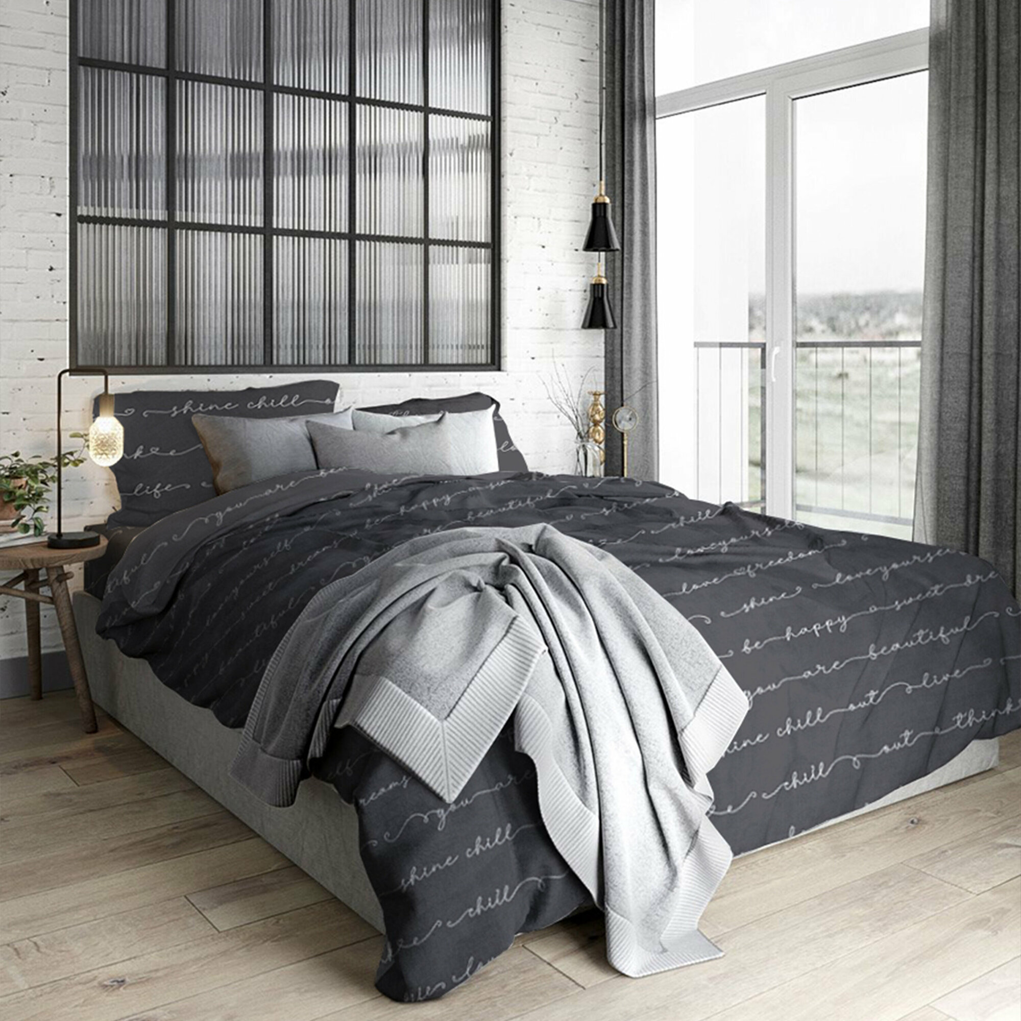 Постельное белье 1,5-спальный Galtex Нежность поплин Позитив темно-серый 1 854 ₽