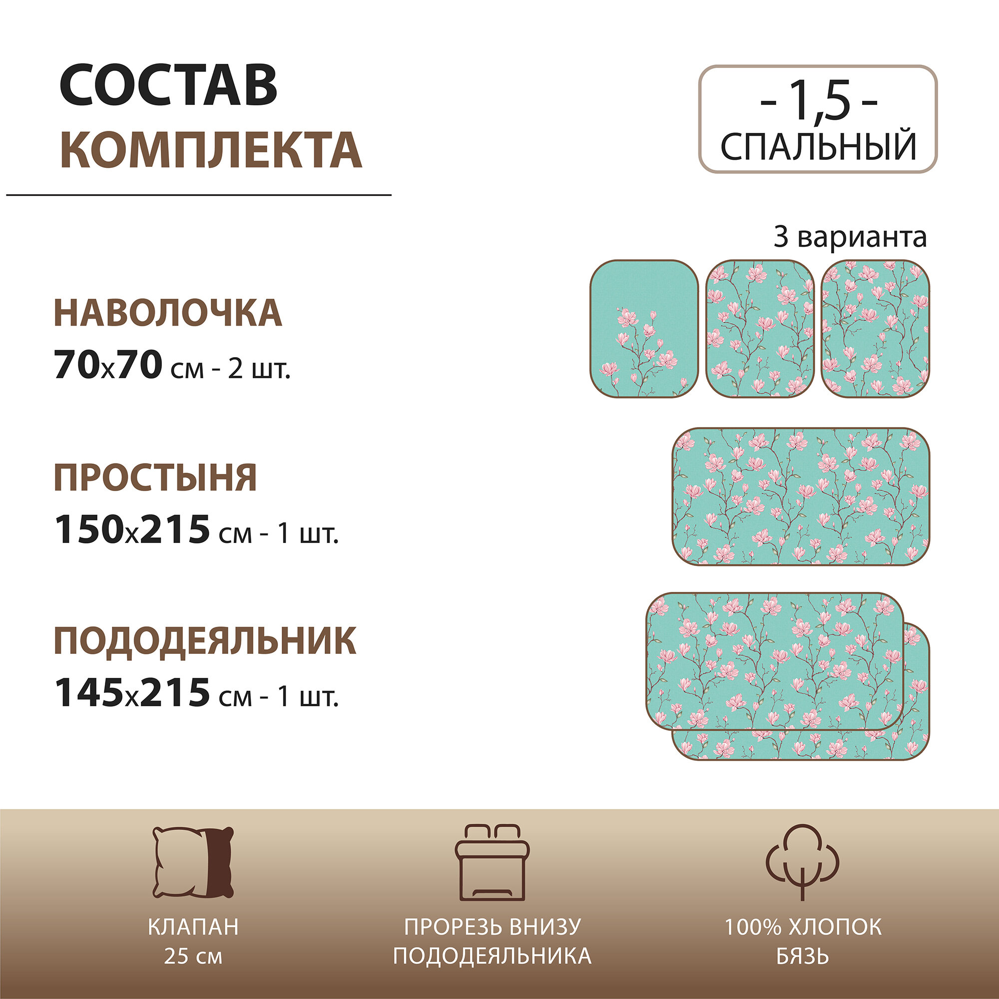 Постельное белье 1,5-спальный размер спал спалыч бязь Сиано, хлопок, наволочки 70*70 - 2 шт 2 309 ₽