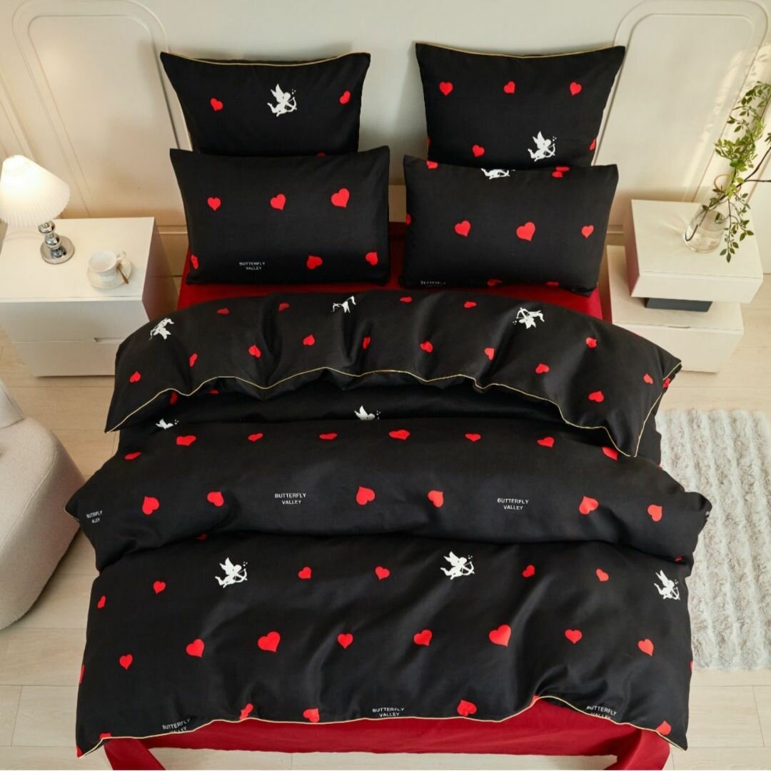 Постельное белье Alanna, 1.5 спальное, Бархатный сатин, Сердечки на красном 14 февраля 3 190 ₽