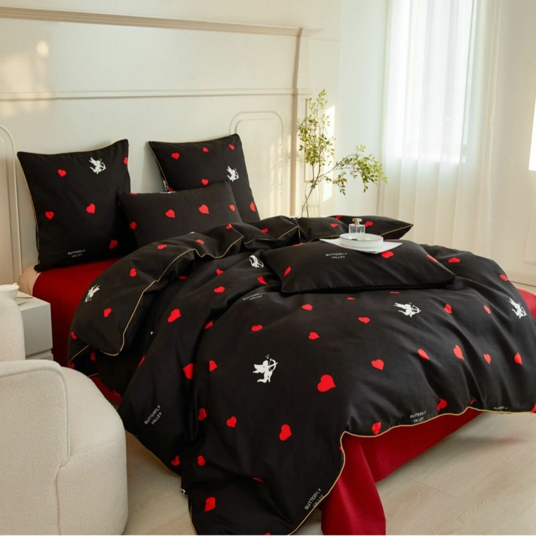 10 цен на Постельное белье Alanna, Евро, Бархатный сатин, Купидоны