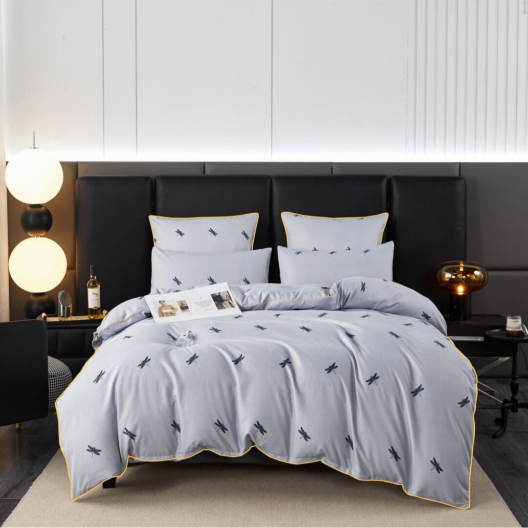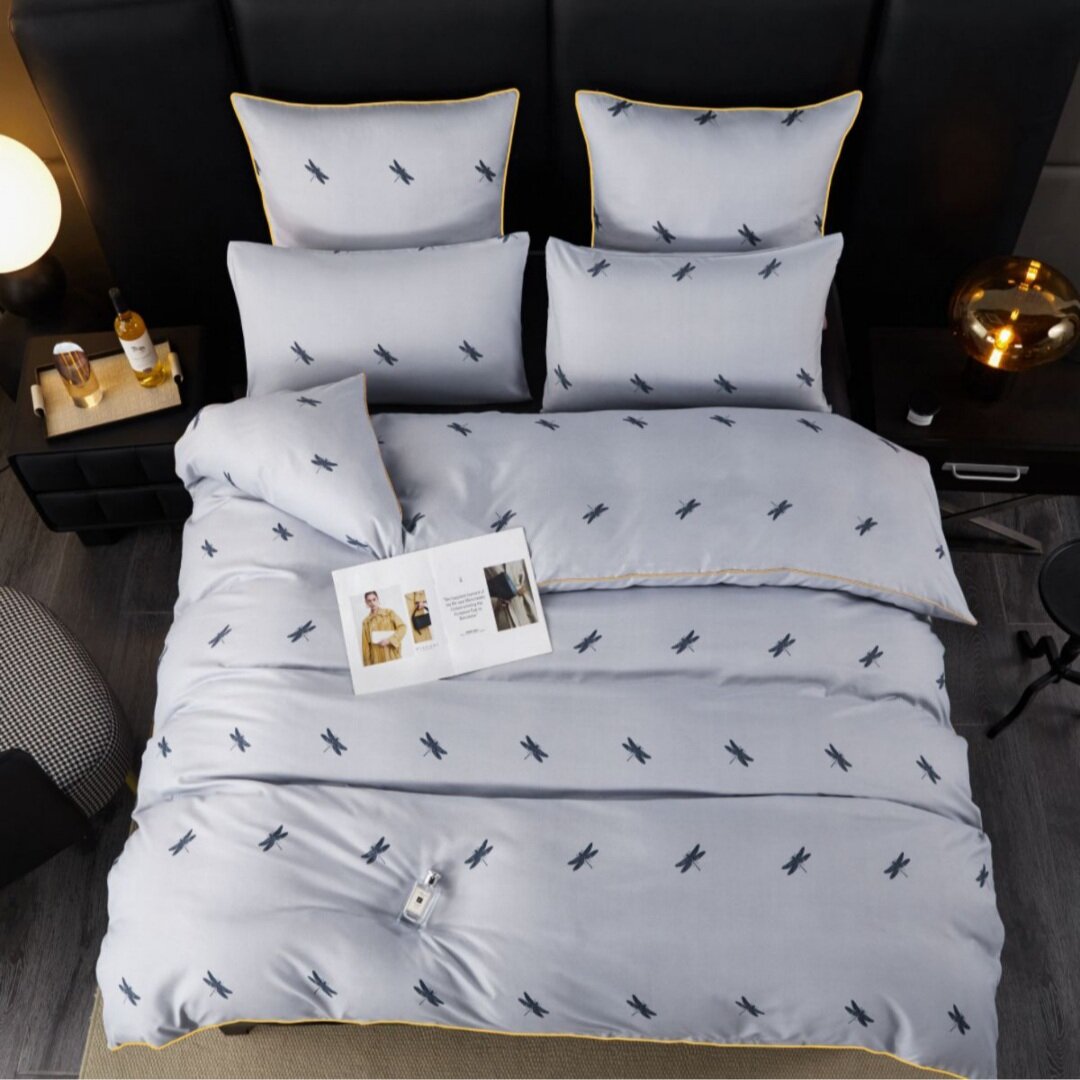 Отзывы на Постельное белье Alanna, Семейный комплект, Бархатный сатин, Стрекозы на фиолетовом