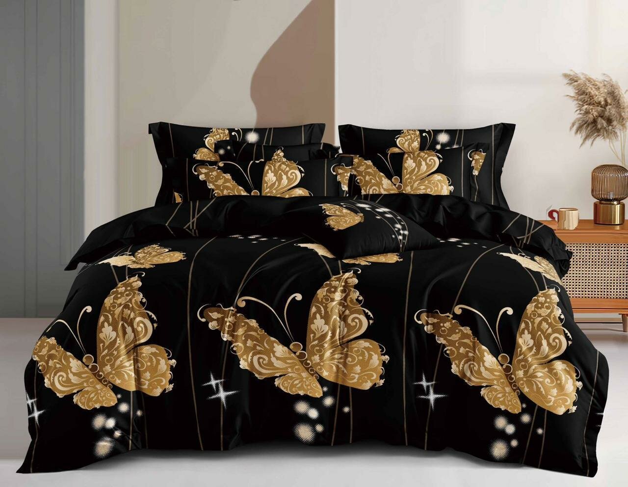 Отзывы на Комплект Постельного Белья 2-х спальное Золотые бабочки / Двуспальное / простыня 180x220 / пододеяльник 180x220 / Наволочки 70x70-2