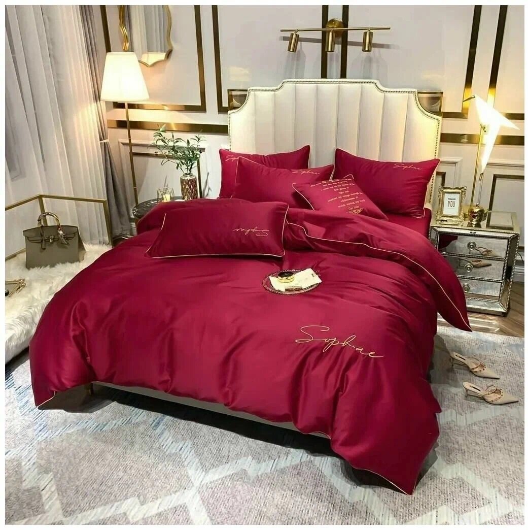 10 цен на Комплект постельного белья Mency Евро, Сатин, Красный