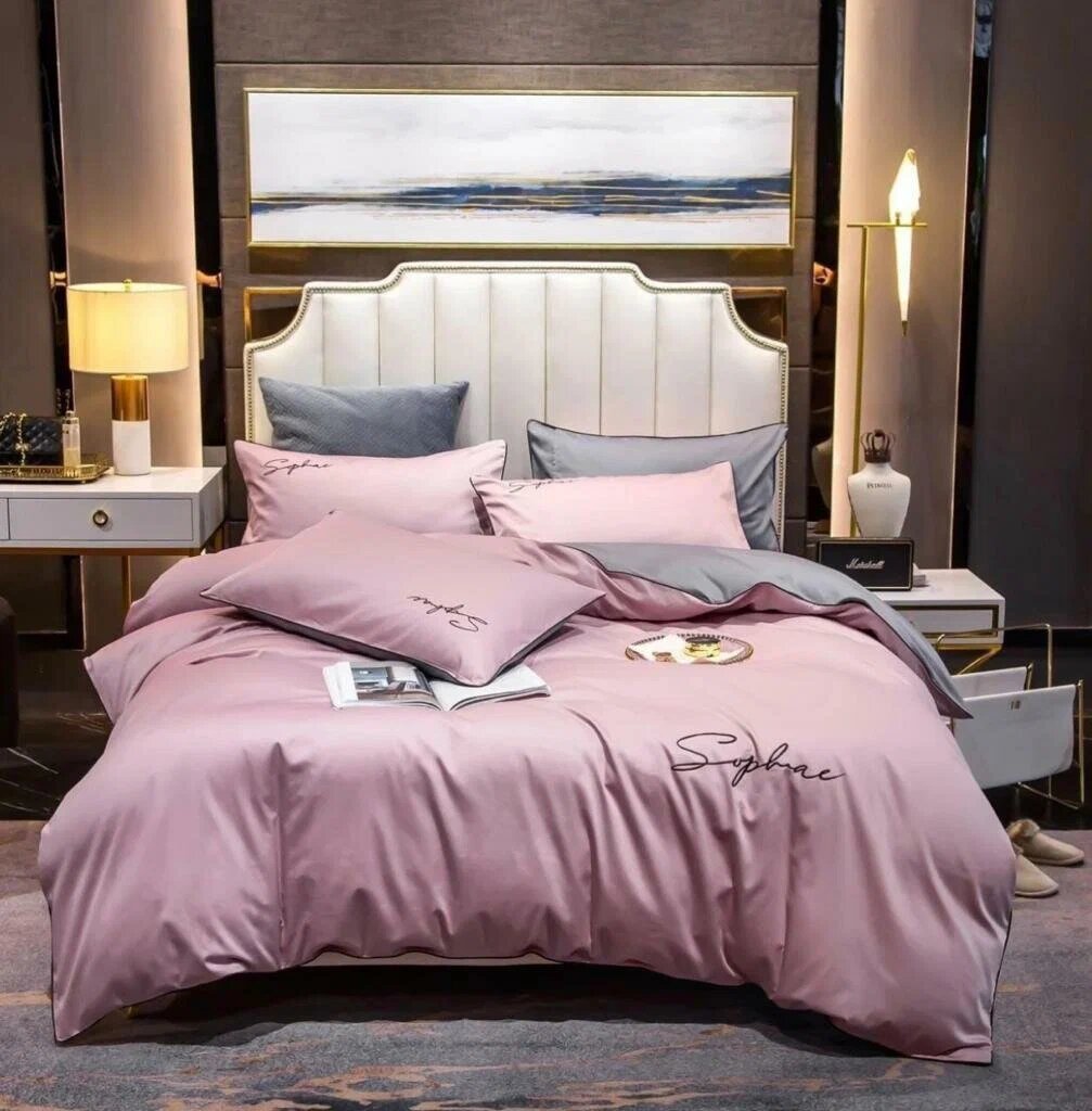 Комплект постельного белья Mency 2 спальный, Сатин, Розовый/серый 2 990 ₽