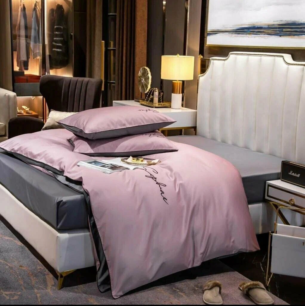 Комплект постельного белья Mency Евро, Сатин, Розовый/серый 3 390 ₽