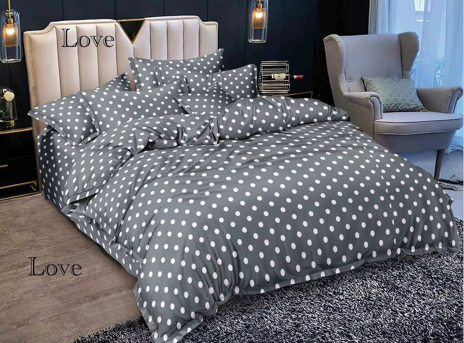 10 цен на Комплект Постельного Белья Евро Серый Горох / Евро / Простыня 220x240 / Пододеяльник 200x200 / Наволочки 70x70-2