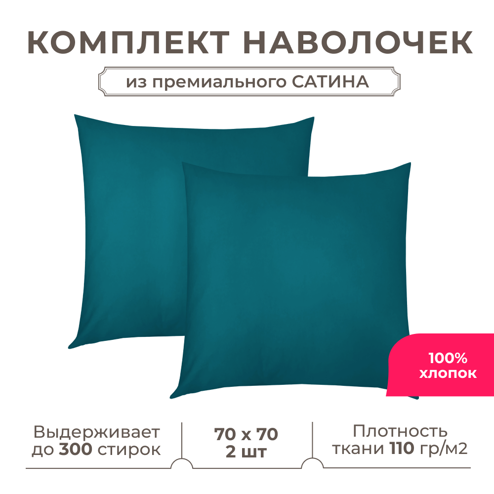 Набор наволочек Lisleep 70x70 см, 2шт, сатин (хлопок), бирюзовый 1 136 ₽