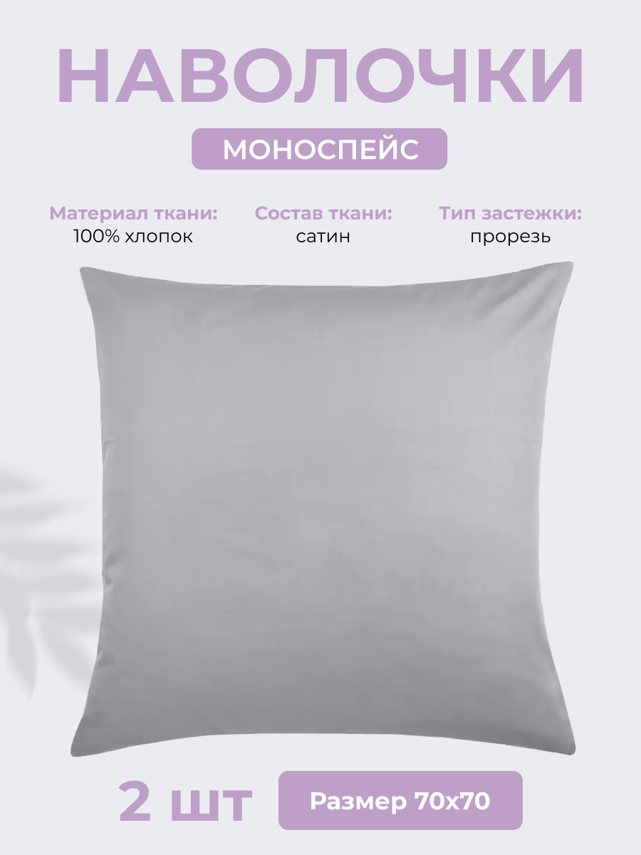Наволочки 70х70 см Моноспейс, комплект из 2х шт, однотонные (аналог икеа), Серый, 100% хлопок, сатин, Ecotex 1 320 ₽