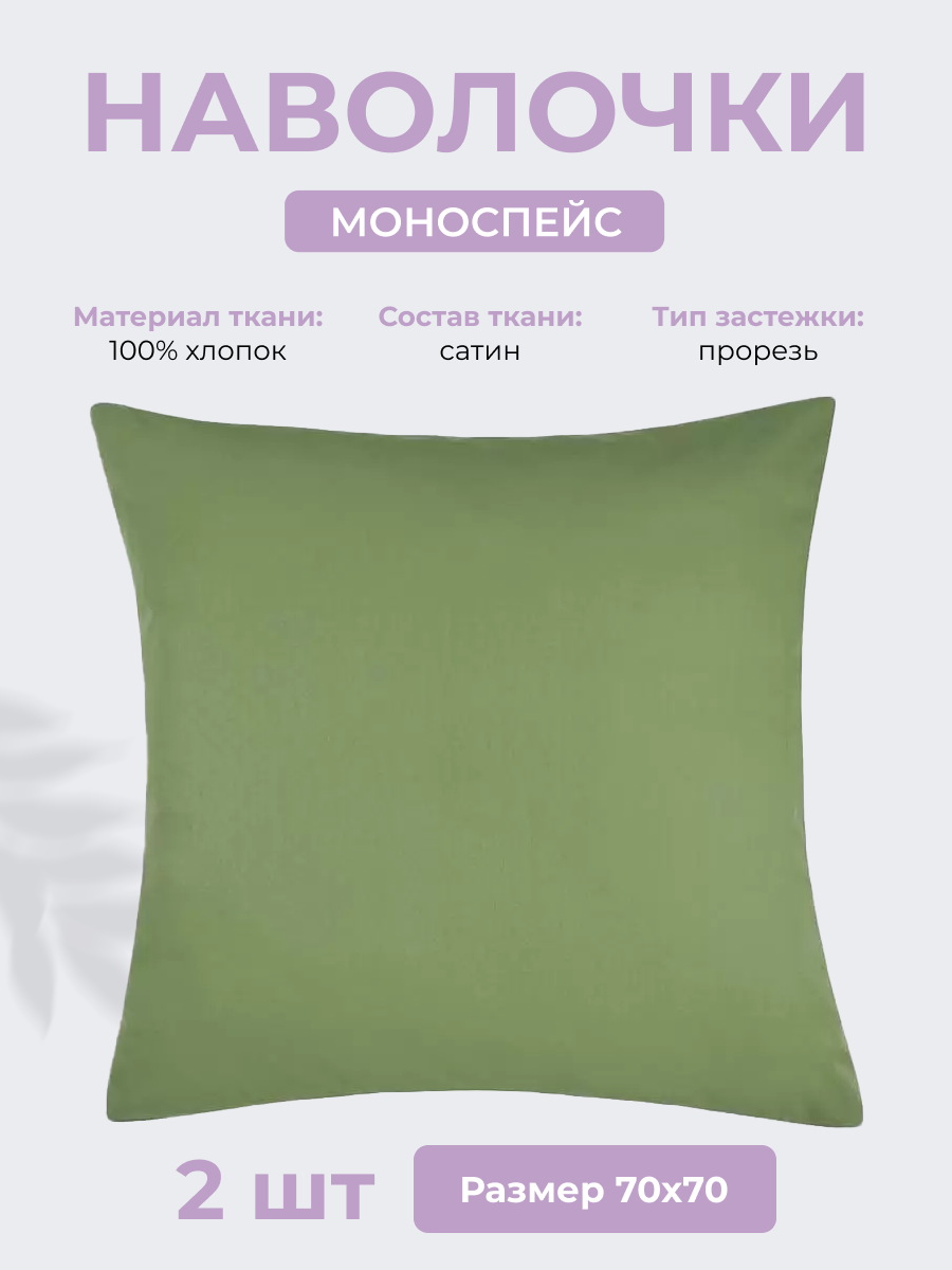 Наволочки 70х70 см Моноспейс, комплект из 2х шт, однотонные (аналог икеа), Зеленый, 100% хлопок, сатин, Ecotex 1 307 ₽