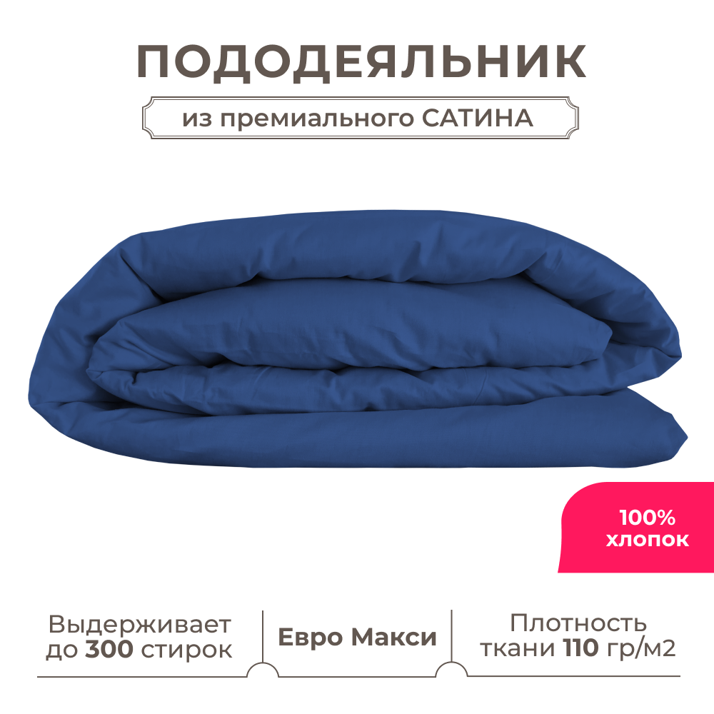 Евро пододеяльник Lisleep 200x220, сатин (хлопок) с прорезью, синий 3 500 ₽