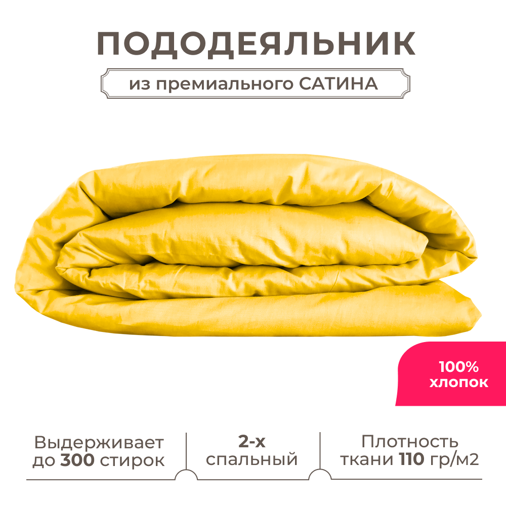 Двуспальный пододеяльник Lisleep 175х215, сатин (хлопок) с прорезью, желтый информация: