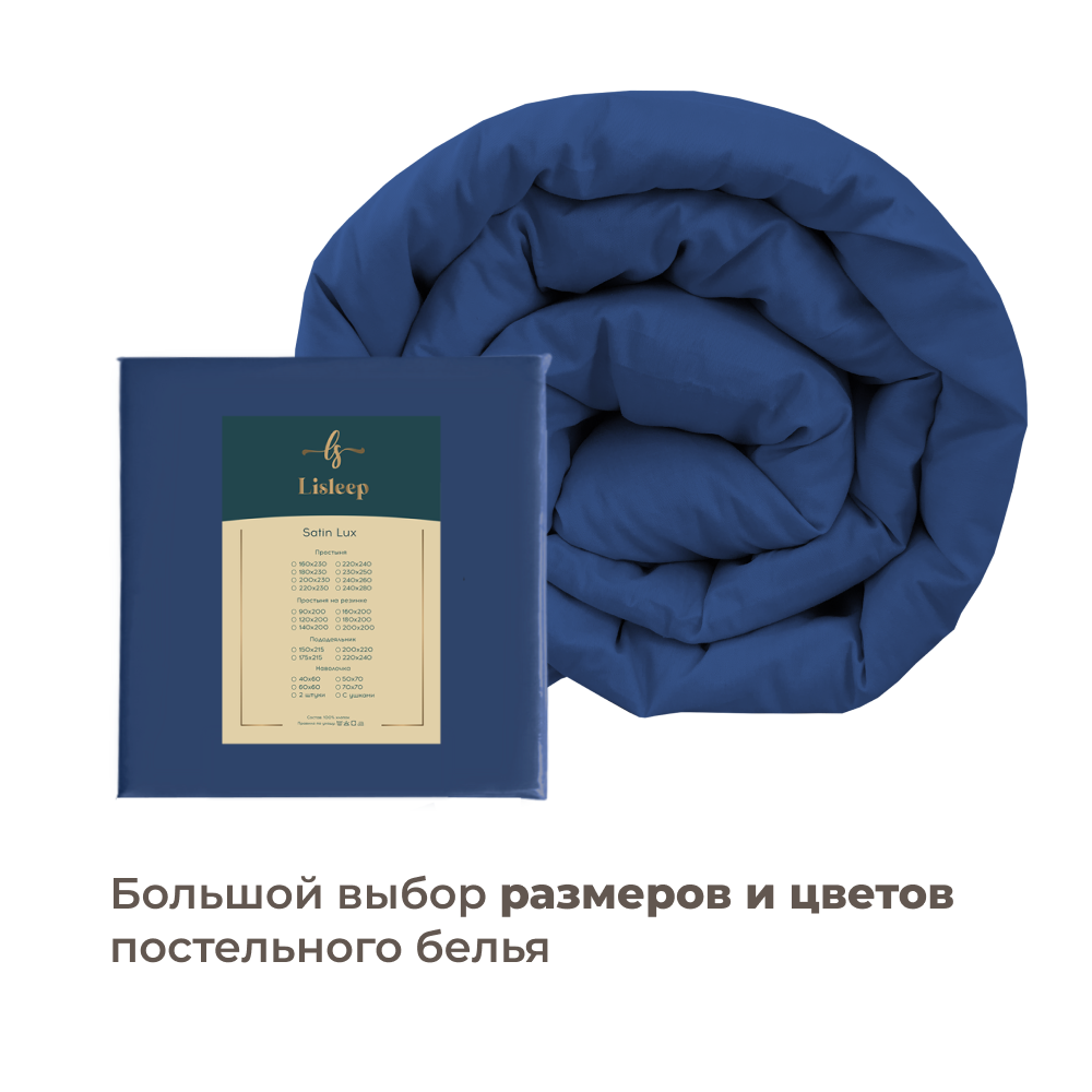 Евро пододеяльник Lisleep 200x220, сатин (хлопок) с прорезью, синий информация: