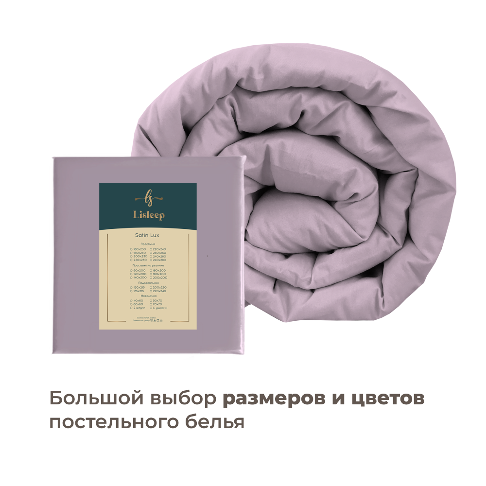 1.5 спальный пододеяльник Lisleep 145х215, сатин (хлопок) с прорезью, пудровый 2 670 ₽