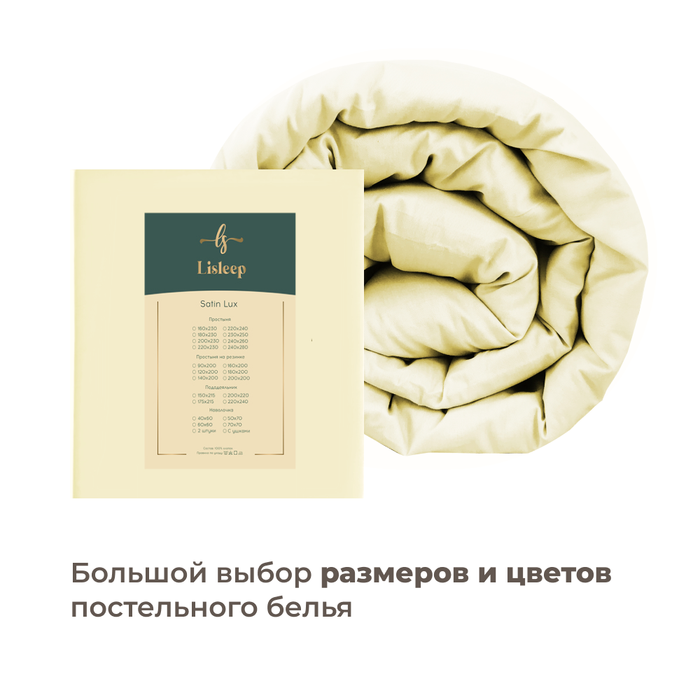 Евро пододеяльник Lisleep 200x220, сатин (хлопок) с прорезью, шампань 3 162 ₽