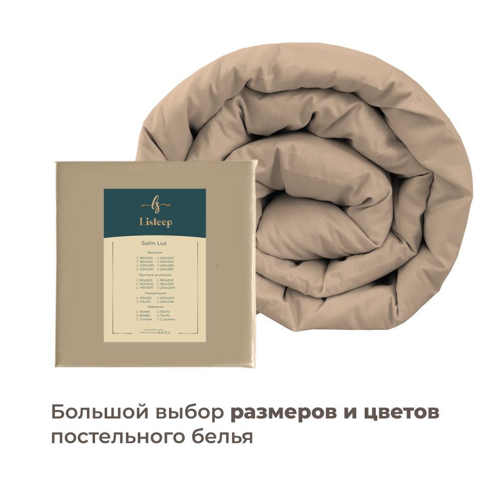 Евро пододеяльник Lisleep 200x220, сатин (хлопок) с прорезью, шампань 3 162 ₽