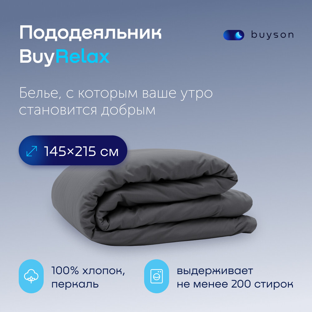 Пододеяльник BuyRelax 1,5 спальный 145x215 хлопок (перкаль) графит информация: