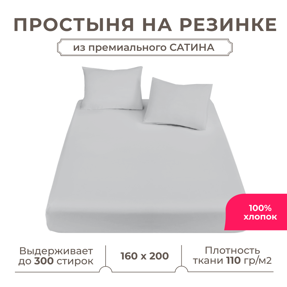 Простынь на резинке Lisleep 160х200, натяжная, сатин (100% хлопок), серый информация: