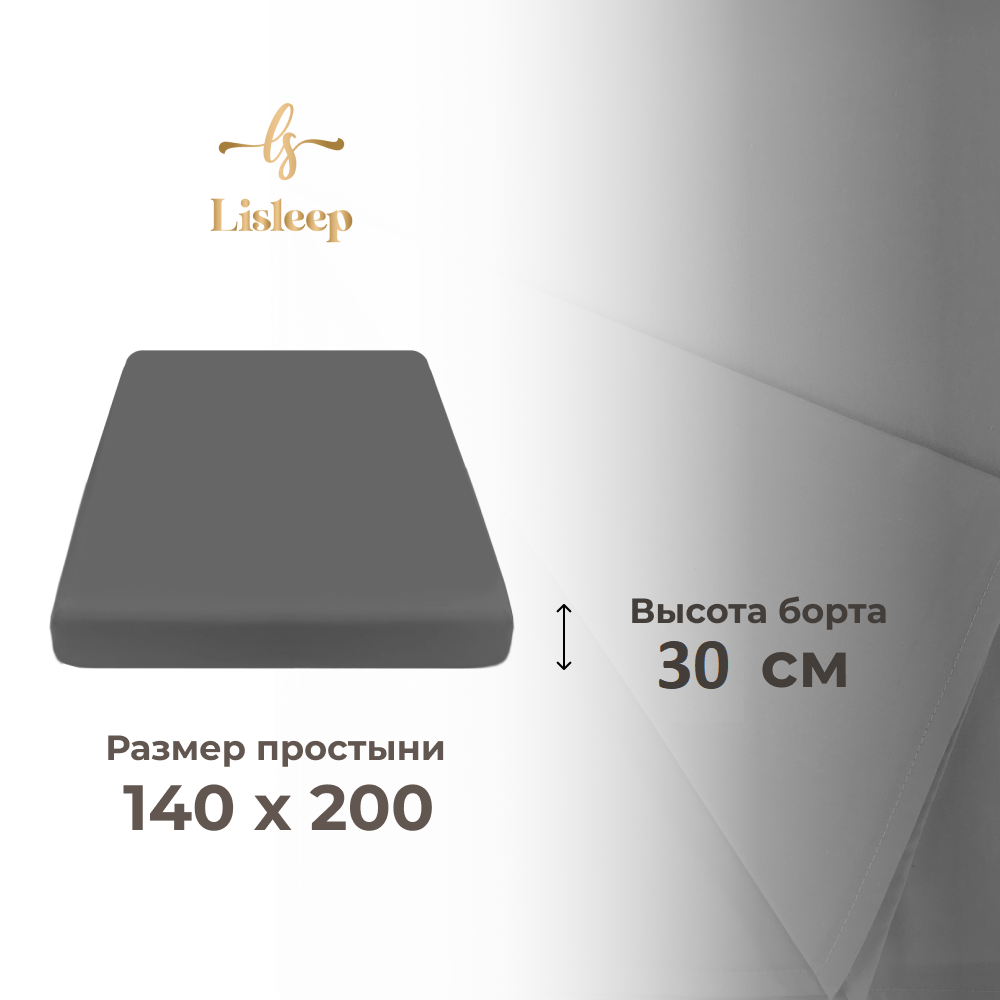 10 цен на Простынь на резинке Lisleep 140х200, натяжная, сатин (100% хлопок), графит
