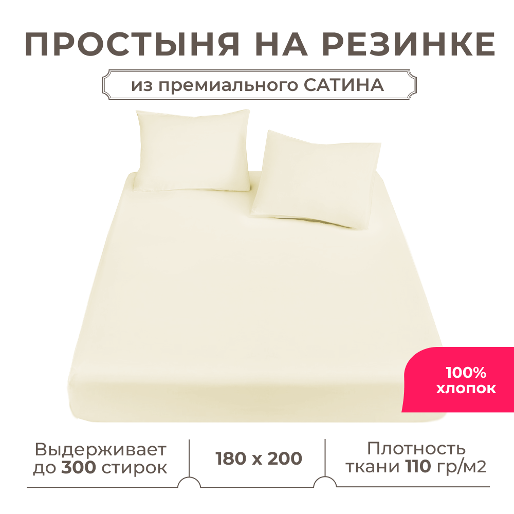 Простынь на резинке Lisleep 180х200, натяжная, сатин (100% хлопок), шампань информация: