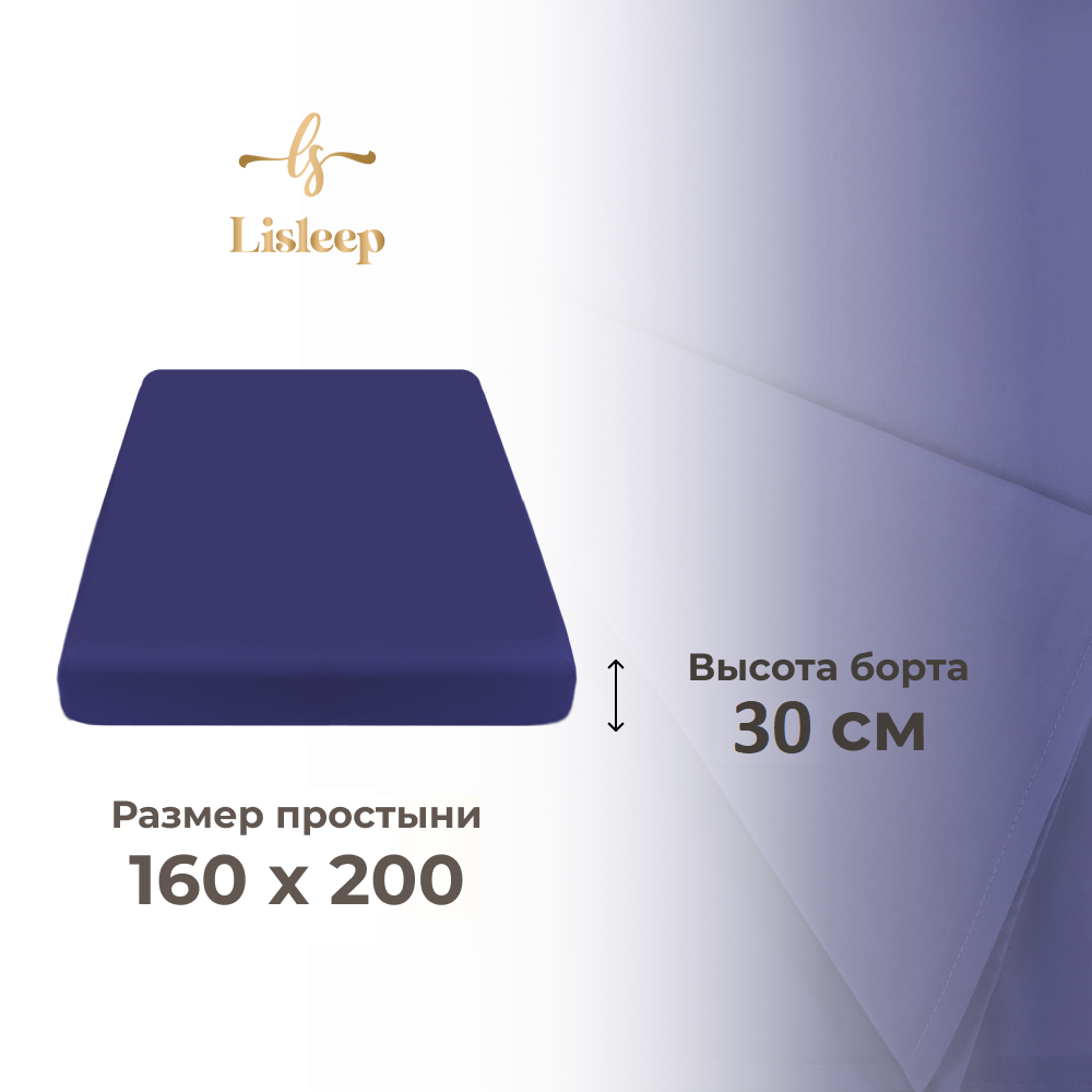 10 цен на Простынь на резинке Lisleep 160х200, натяжная, сатин (100% хлопок), синий