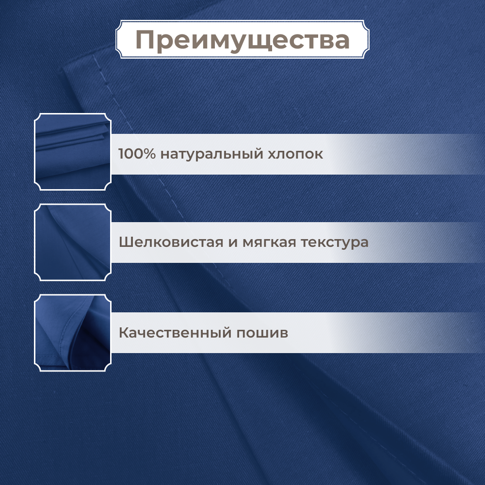 Простынь на резинке Lisleep 140х200, натяжная, сатин (100% хлопок), синий информация: